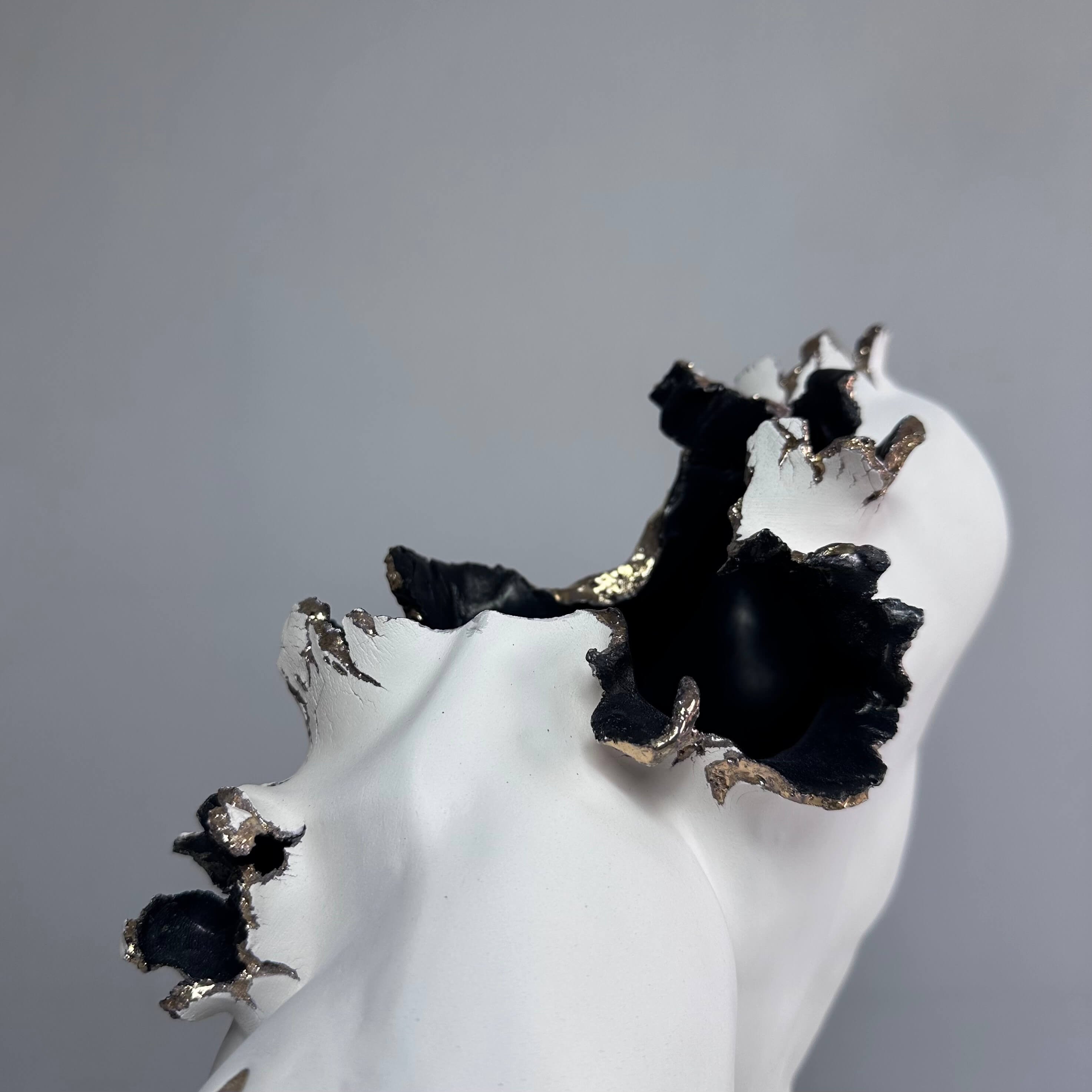 Cerámica Esmaltada con oro. Dimensiones de cada pieza: 35 x 28 x 18 cm. 2024.